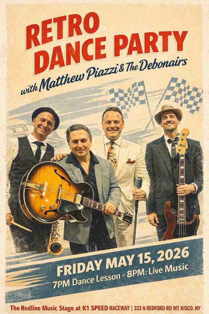 https://matthewpiazzi.com/events/swingin-dance-party-at-redline-music-stage/ Catch Matthew Piazzi & The Debonairs at the K! SPEED RACEWAY in Mount Kisco NY for a Swingin' RETRO DANCE PARTY on FRIDAY MAY 15th. Details here